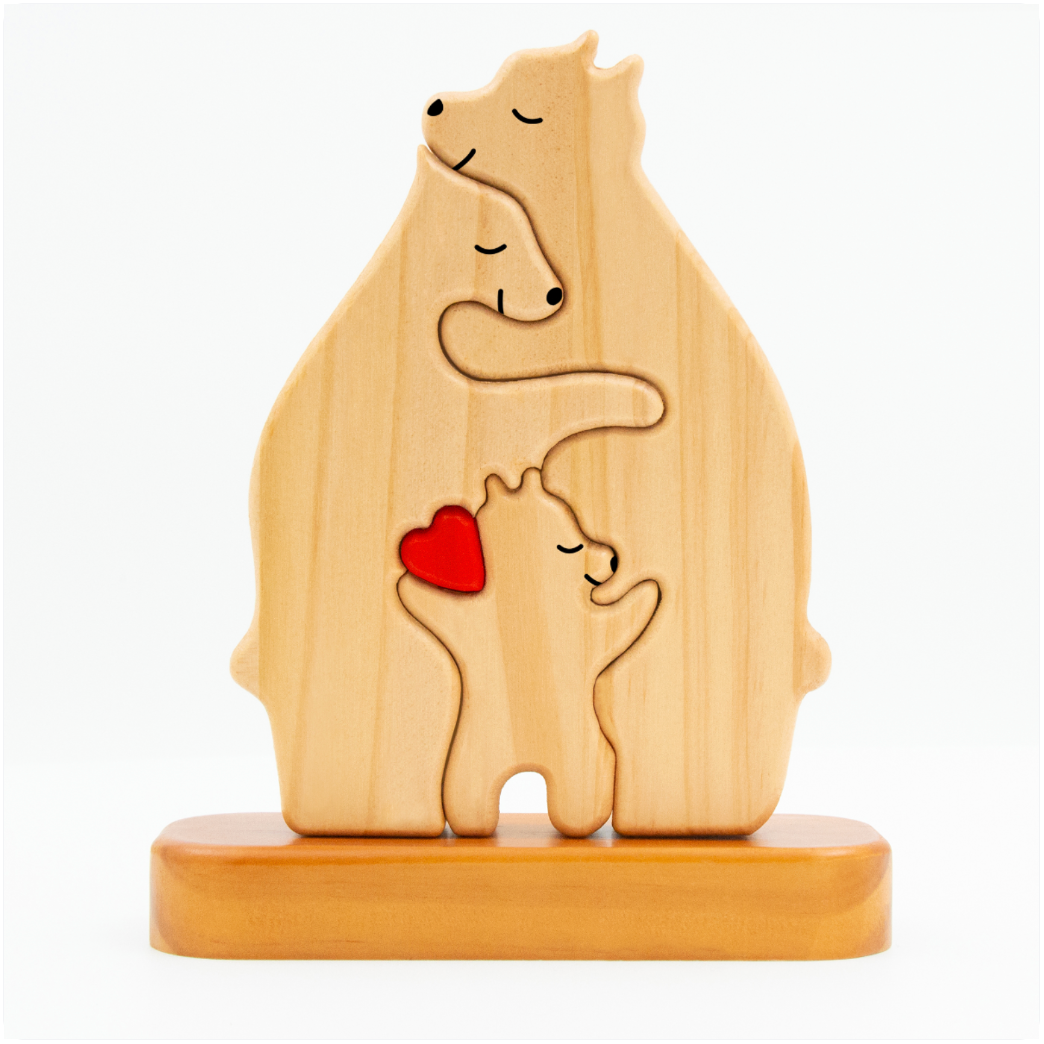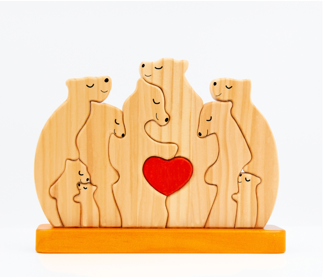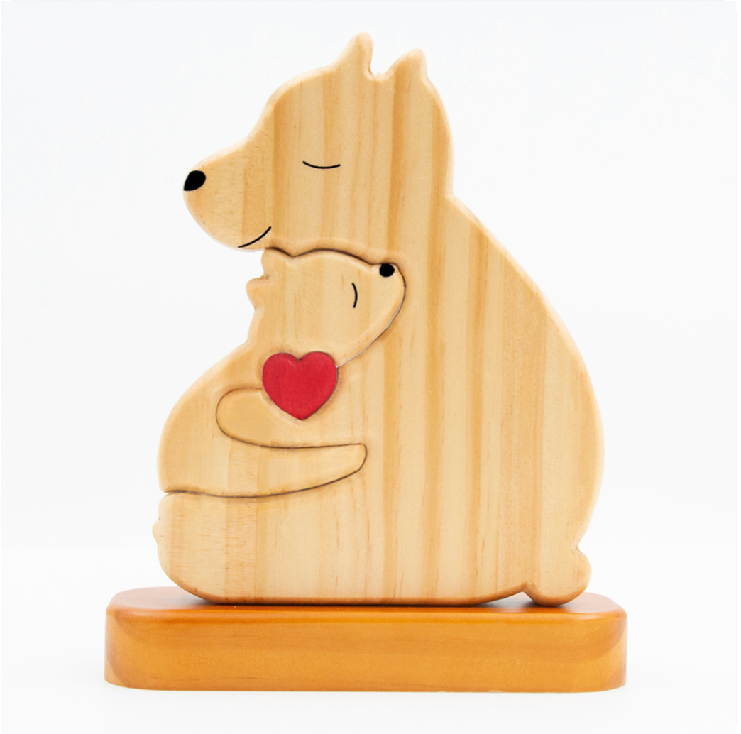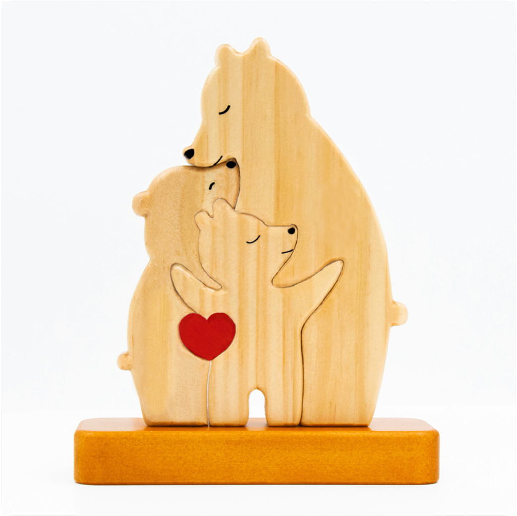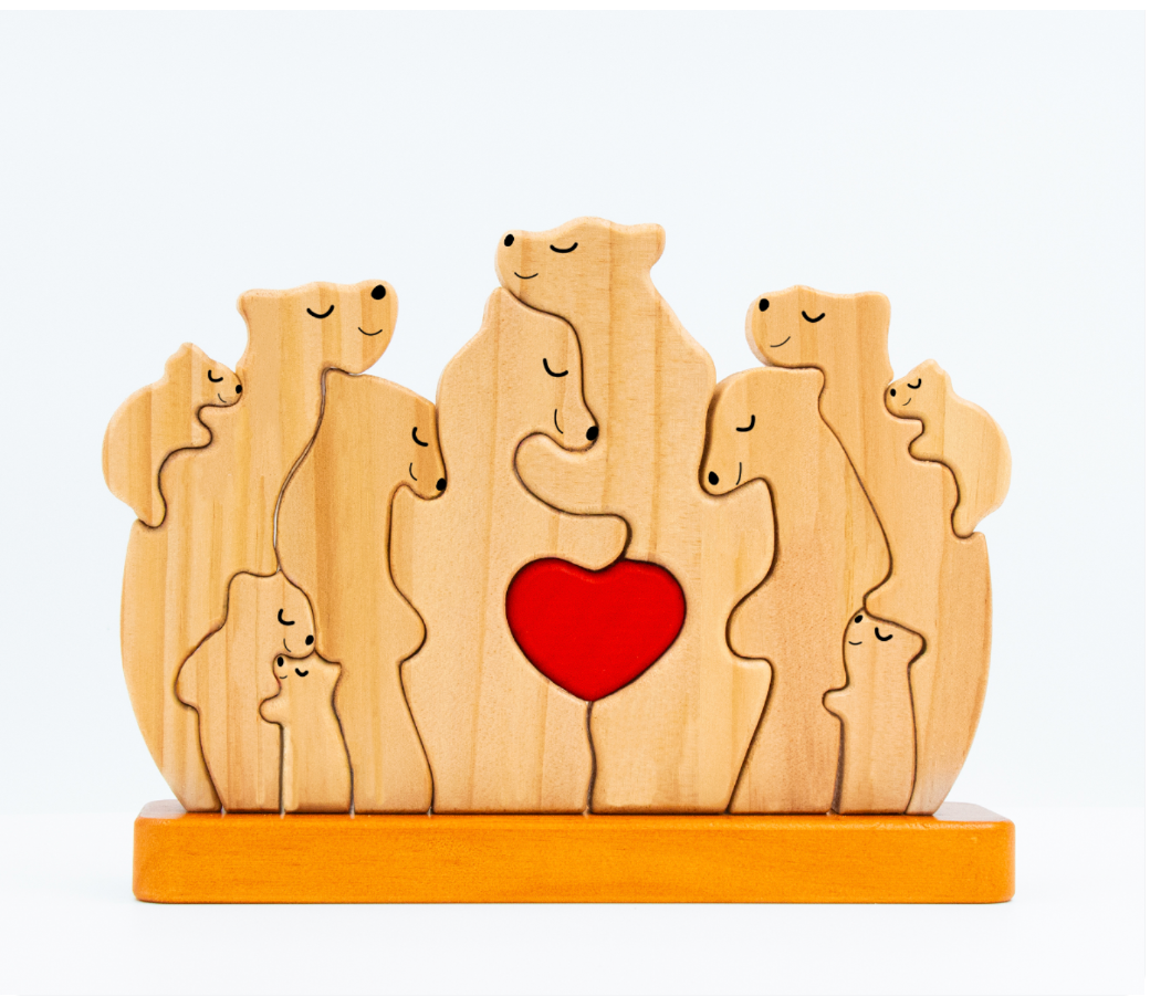 Made from eco-friendly pulp wood, our wooden puzzles are designed with a material recognized for its low environmental impact. The family bear puzzle offers the possibility of customization by directly engraving a name. Ideal for various occasions such as celebrations, birthdays, and housewarmings, the little bear puzzle can also enhance the ambiance of any environment. It can be proudly displayed as a decorative element in your home, adding a touch of elegance wherever you place it.