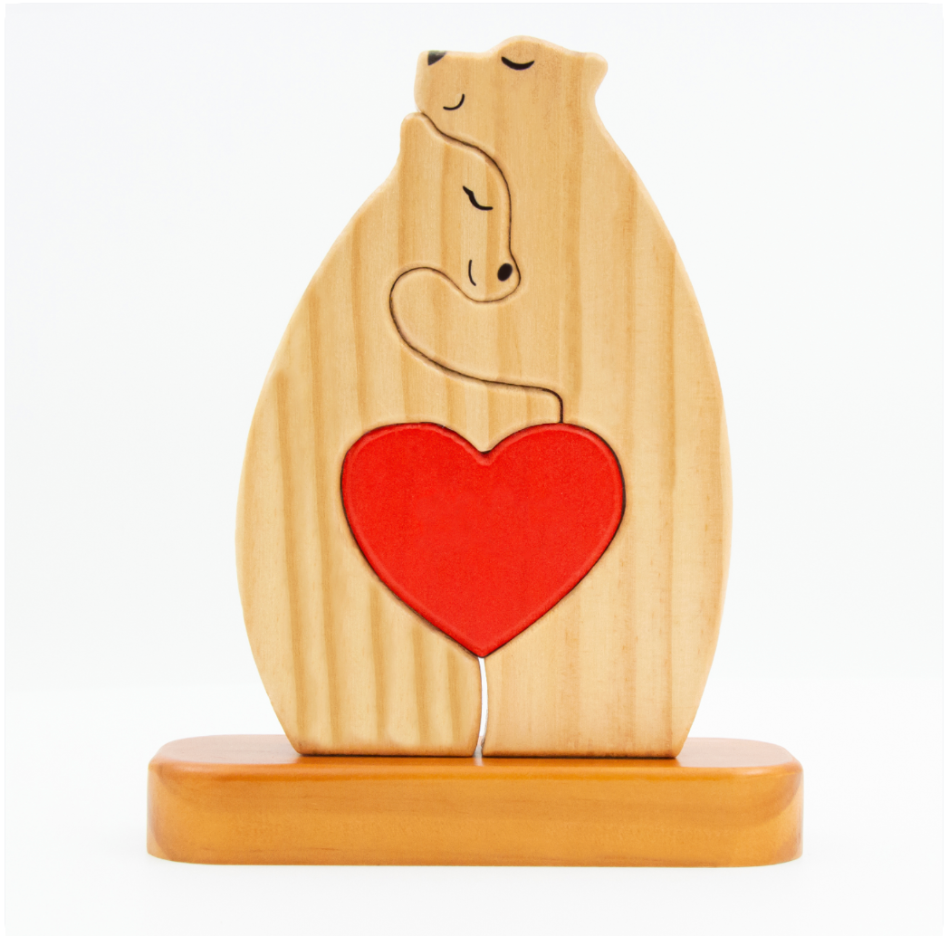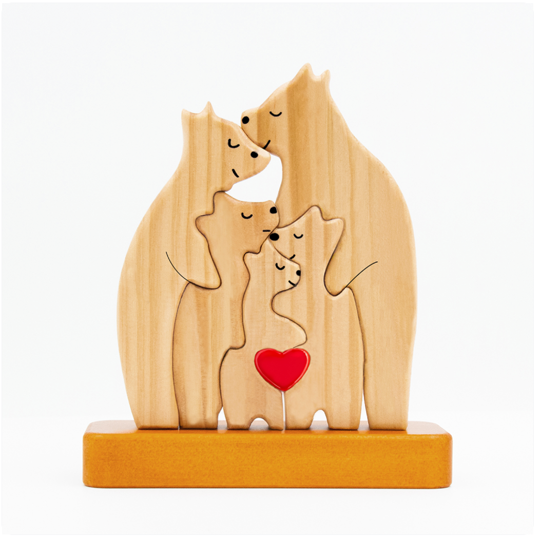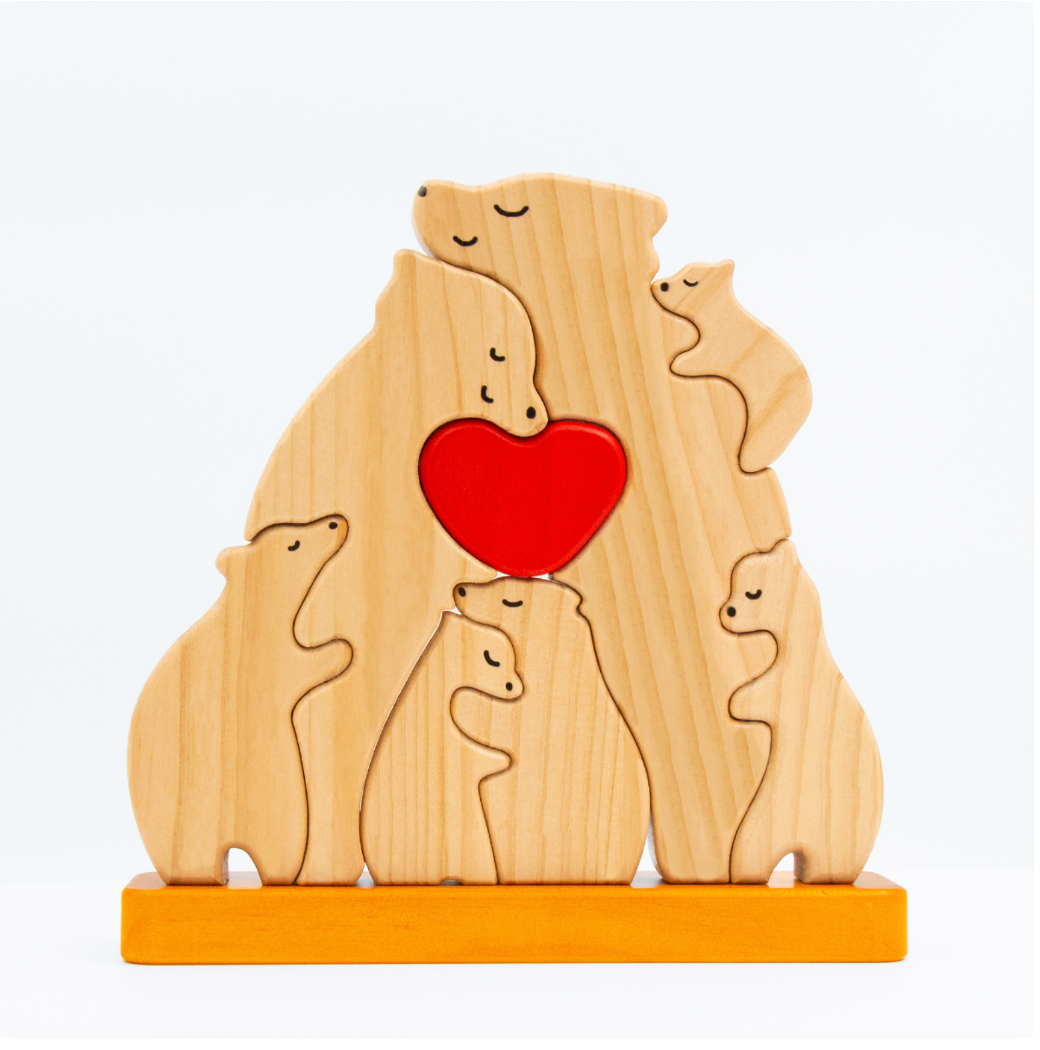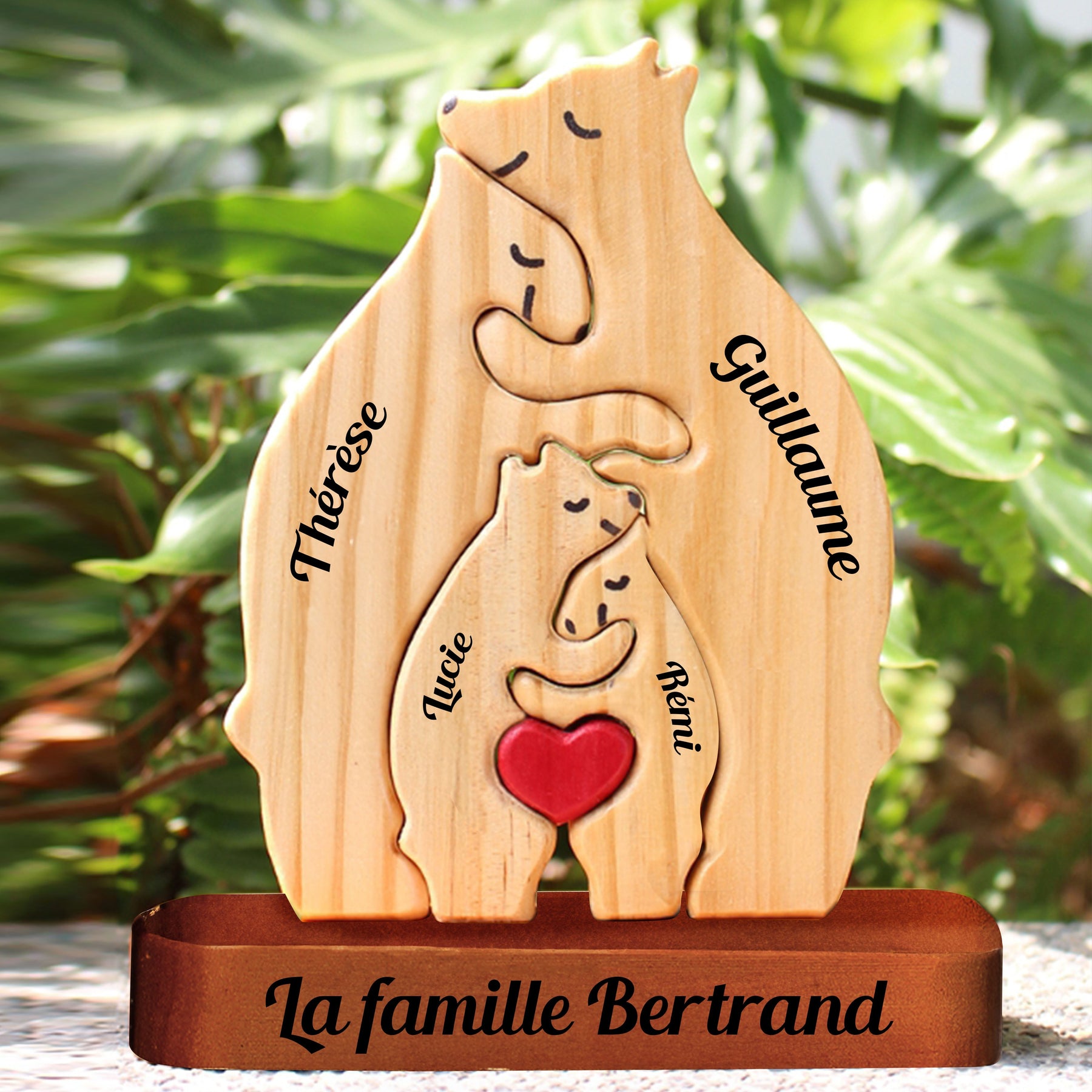 Made from eco-friendly pulp wood, our wooden puzzles are designed with a material recognized for its low environmental impact. The family bear puzzle offers the possibility of customization by directly engraving a name. Ideal for various occasions such as celebrations, birthdays, and housewarmings, the little bear puzzle can also enhance the ambiance of any environment. It can be proudly displayed as a decorative element in your home, adding a touch of elegance wherever you place it.